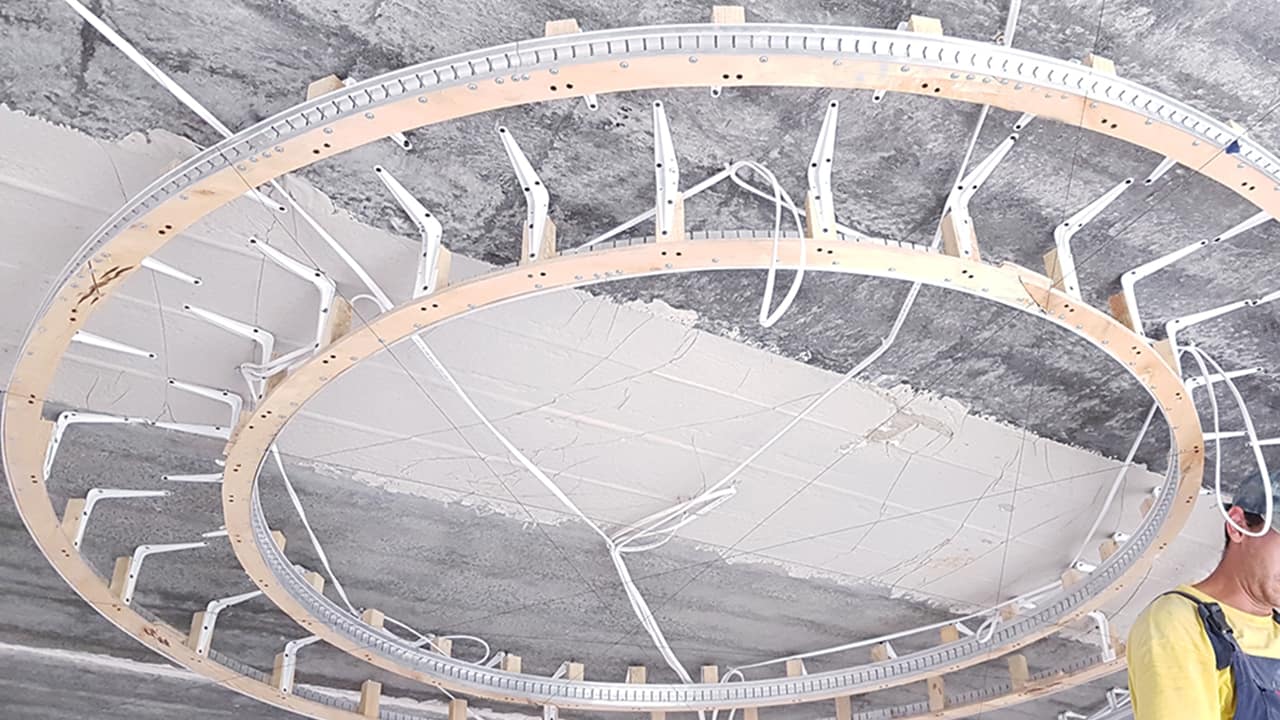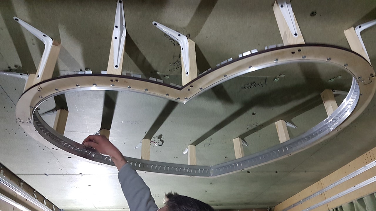 - обеспечить точное совпадение контура перехода уровня натяжного потолка с разрабатываемым проектом;